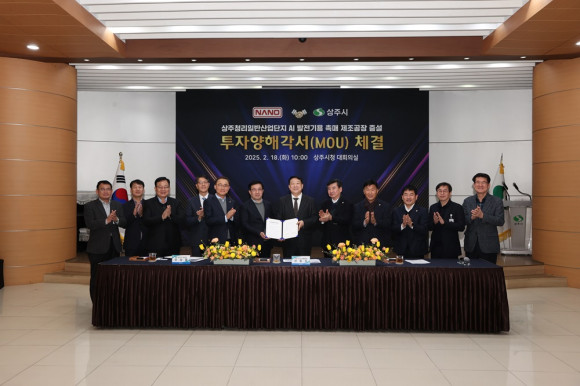 |  | | | ⓒ (주)영남도민일보 | | [영남도민일보] 최 교열 기자 = 주식회사 나노(대표이사 신동우)와 상주시(시장 강영석)는 2025년 2월 18일(화) 상주시청 대회의실에서 상주 청리일반산업단지 내 인공지능 데이터센터 비상발전기용 디젤촉매 제조공장 증설을 내용으로 하는 투자양해각서를 체결하였다.