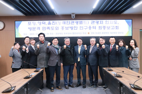 |  | | | ⓒ (주)영남도민일보 | | [영남도민일보] 김 재영 기자 = 경북도의회 「경북 동해안 관광발전 개선방안 연구회」(대표 연규식 의원)는 6일(목) 11시, 환동해지역본부 회의실에서 ‘포항·영덕·울진(동해안관광벨트) 관광지 인지도, 방문객 만족도 및 홍보방안 연구용역’ 최종보고회를 개최했다.
