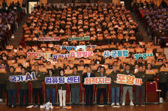 직무교육에서는 주민들과의 화합을 위한 소통 방법에 대해 설명하며, 지역 주민들의 리더로 이·통장의 직무역량을 높이는 시간을 마련했다. 특히 이날 행사에서는 포항시 주요 시책 중 하나인 ‘국가 AI 컴퓨팅센터 포항 유치’ 퍼포먼스를 선보이며, 국가 AI 컴퓨팅센터 유치를 희망하는 시민들의 마음을 하나로 모았다.