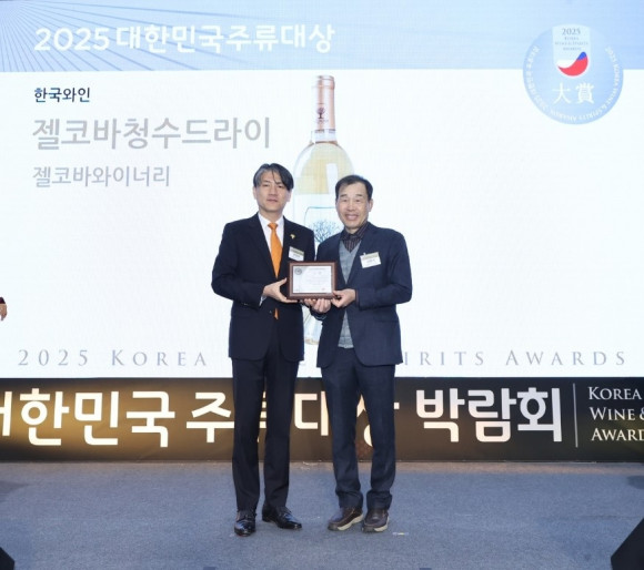 |  | | | ⓒ (주)영남도민일보 | | [영남도민일보] 최 교열 기자 = 상주시농업기술센터(김정수 소장)에서 육성한 농업회사법인 주식회사 젤코바와이너리(강창석 대표)가 생산한 ‘젤코바청수드라이’가 지난 7일 조선비즈가 주최한 ‘2025 대한민국 주류대상’에서 우리술 한국와인부문 대상을 수상하였다.