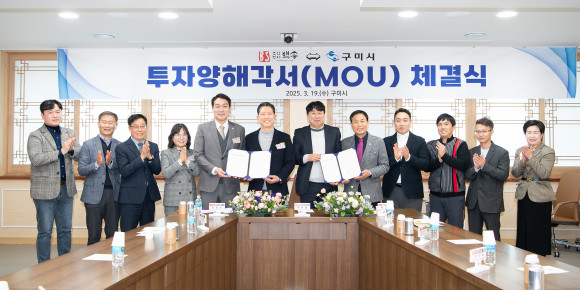 |  | | | ⓒ (주)영남도민일보 | | [영남도민일보] 김 옥순 기자 = 구미시는 3월 19일 구미시청에서 김장호 구미시장, 박교상 구미시의회 의장, ㈜백송 박흥열 대표이사, ㈜세아메카닉스 이성욱 대표 등이 참석한 가운데 127억원 규모의 투자양해각서(MOU)를 체결했다고 밝혔다.