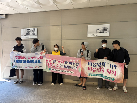 이에 따라 예천군 정신건강복지센터는 경국대 예천캠퍼스 재학생을 대상으로 다양한 자살 예방 캠페인을 펼쳤다. 센터는 자살 고위험군 조기 발견 및 치료를 위한 서비스 안내 및 자살 예방 실천 메시지 홍보에 힘썼다. 안남기 보건소장은 “자살 고위험 시기 집중 관리를 통해 고위험군을 조기 발굴하고 자살을 예방하는데 최선을 다하겠다.”고 말했다.