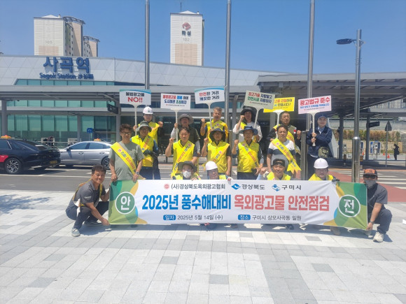 이에 따라 지난 14일에는 사곡역 앞에서 경북옥외광고협회 정원표 구미시지부장을 비롯한 협회 회원 20여 명이 참석한 가운데 안전구호를 제창하고, 점검요령 설명과 안전교육을 진행한 뒤 본격적인 현장 점검에 나섰다.