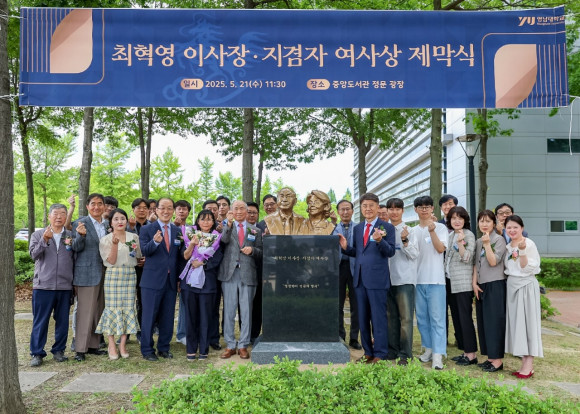 |  | | | ⓒ (주)영남도민일보 | | [영남도민일보] 김 재영 기자 = 예천군(군수 김학동)은 지난 5월 21일 영남대학교 중앙도서관 야외 기부 예우 공간에서 거행된 최혁영 (재)최혁영장학회 이사장과 지겸자 여사 부부의 흉상 제막식을 진심으로 축하했다.