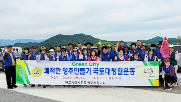 |  | | | ⓒ (주)영남도민일보 | | [영남도민일보] 김 창기 기자 = 바르게살기운동영주시협의회(회장 박용성)는 6월 24일, 영주시 ‘사랑의 온기 나눔 캠페인’ 일환으로 안정면 비행장 인근에서 국토대청결운동을 실시하며 깨끗한 지역 환경조성에 앞장섰다.