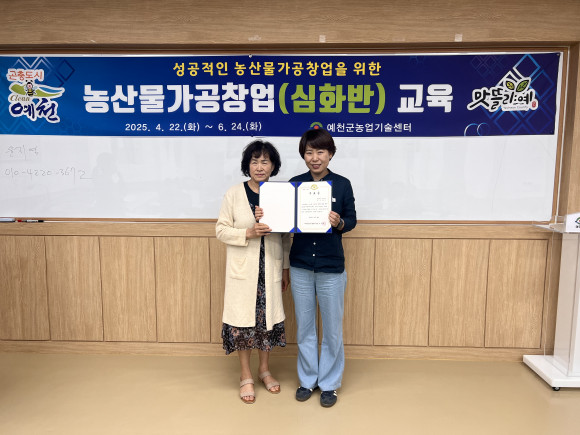 손석원 농업기술센터소장은 “농업의 부가가치를 높이는 농산물 가공 분야는 지역 농촌의 미래를 이끄는 중요한 열쇠”라며, “교육을 마친 여러분이 앞으로 예천을 대표하는 가공 창업인이 되기를 기대한다”고 격려의 말을 전했다.