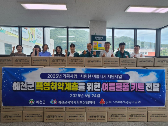 이번 사업은 예천군지역사회보장협의체와 경북사회복지공동모금회가 협력해 추진하며, 각 읍면지역사회보장협의체의 추천을 통해 폭염에 취약한 저소득계층 220가구에 여름물품 키트를 지원할 예정이다.