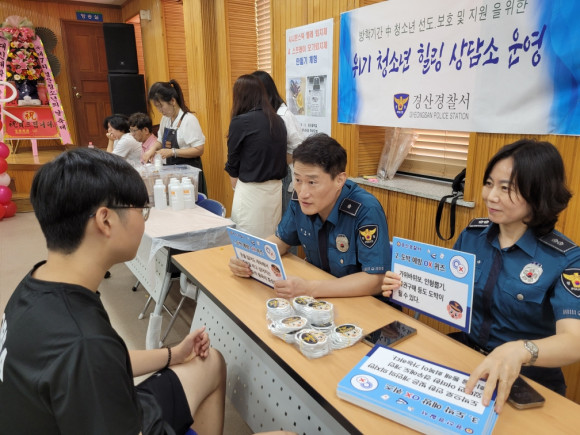 경산경찰서는 학교폭력 예방 부스를 마련해 방문하는 청소년들에게 공중협박죄(폭발물 설치 협박, 살인예고, 흉기난동 예고글 게시)는 명백한 범죄, 도박· 딥페이크 근절 OX 퀴즈를 통해 케릭터 메모지 등 선물을 전달하고 특히 별도 공간을 마련하여 여름 방학을 맞이하여 가출, 비행 등 위험에 노출되기 쉬운 위기 청소년들에 대한 폭력 예방 상담을 진행하였다.