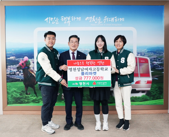 |  | | | ↑↑ 17일 성남여자고등학교에서 교내 플리마켓 운영 수익금 777,000원을 영천시에 기탁했다. | | ⓒ (주)영남도민일보 | | [영남도민일보] 박 성모 기자 = 영천시는 17일 성남여자고등학교에서 교내 플리마켓 운영 수익금 777,000원을 영천시에 기탁했다고 밝혔다. 이날 전달식에는 유성림 교감, 김홍범 교사, 김채원 학생회장이 참석했다.