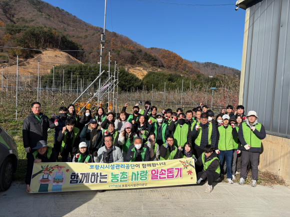 |  | | | ⓒ (주)영남도민일보 | | [영남도민일보] 홍 인환 기자 = 포항시시설관리공단은 지난 21일 임직원 50여명이 포항시 죽장면 농가를 찾아 사과 수확 및 운반작업 등을 지원하며 농촌 일손돕기 봉사활동에 나섰다.