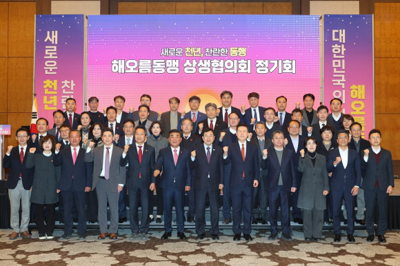 |  | | | ↑↑ 24일 경주 힐튼호텔에서 열린 해오름동맹 상생협의회 정기회에서 참석자들이 상생 발전을 다짐하며 구호를 외친 뒤 기념 촬영을 하고 있다. | | ⓒ (주)영남도민일보 | | [영남도민일보] 정 문용 기자 = 경주시는 24일 오후 경주 힐튼호텔에서 ‘2025년 하반기 해오름동맹 상생협의회 정기회’를 열고 공동협력사업 추진 현황과 내년도 예산 편성 방향 등을 논의했다고 밝혔다.