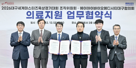 이날 협약식에는 김정기 대구광역시장 권한대행 행정부시장 겸 조직위원장, 민복기 AI 바이오·메디시티대구협의회장, 진기훈 조직위 사무총장 등이 참석해, 대회의 안전한 경기 환경 조성과 신속한 의료 대응 체계 구축을 위해 상호 협력하기로 뜻을 모았다.