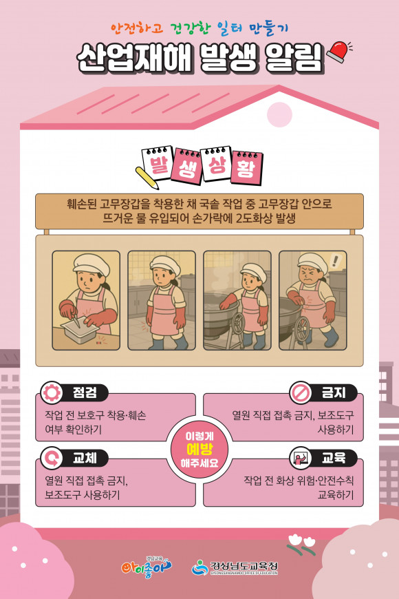 양미 안전총괄과장은 “이번 ‘365 안심 산업안전 캠페인’을 통해 학교 현장의 모든 구성원이 안전의 중요성을 다시 한번 인식하고, 재해를 예방하는 문화가 일상으로 자리 잡기를 바란다”라며 “앞으로도 계절별 캠페인을 정례화하고 관계 기관과 협력해 체계적이고 지속적인 산업안전 행정을 펼치겠다”라고 말했다.