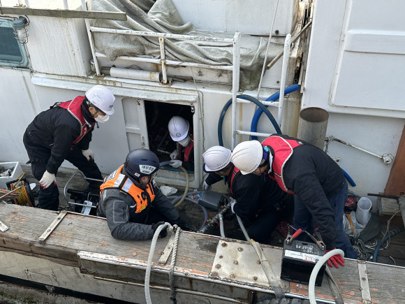 이번 훈련은 태안군 모항항 인근 방파제에 장기 정박 중인 취약선박* 어선 A호를 대상으로 진행됐다. 해당 선박은 기관실내 약 2.8톤의 선저폐수(유성혼합물)가 적재되어 있어, 기상악화시 기름 유출로 인한 2차 해양오염 사고로 확산될 우려가 있는 상황이다. * 취약선박 : 6개월 이상 운항하지 않거나 외관상 해양오염 위험이 현저한 선박