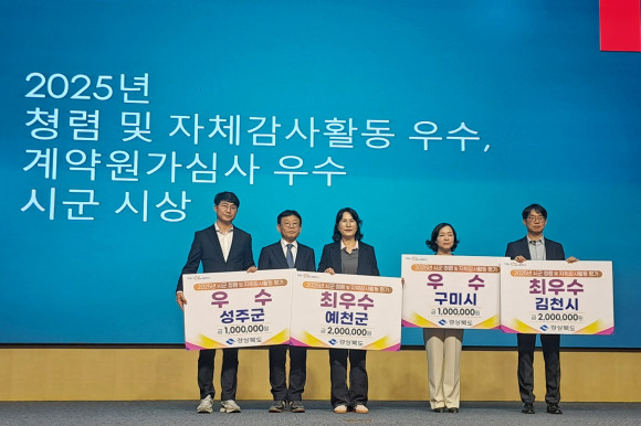 |  | | | ⓒ (주)영남도민일보 | | [영남도민일보] 김 재근 기자 = 예천군은 경상북도가 실시한 「2025년 시·군 청렴 및 자체감사활동 평가」에서 군부 최우수기관으로 선정돼, 26일 구미에서 열린 「2026년 경상북도 청렴·감사인 워크숍」에서 최우수기관 표창을 수상하며 청렴 행정과 감사역량을 대외적으로 입증했다.