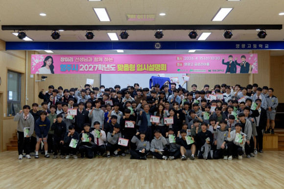 이날 오전에는 영광고등학교에서 메가스터디 소속 장미리 수학 강사가 강연을 진행했다. 장 강사는 수학 학습법과 함께 현재 대입제도에 효율적으로 대응하는 전략, 시간 관리 방법 등을 학생 눈높이에 맞춰 설명해 큰 호응을 얻었다.