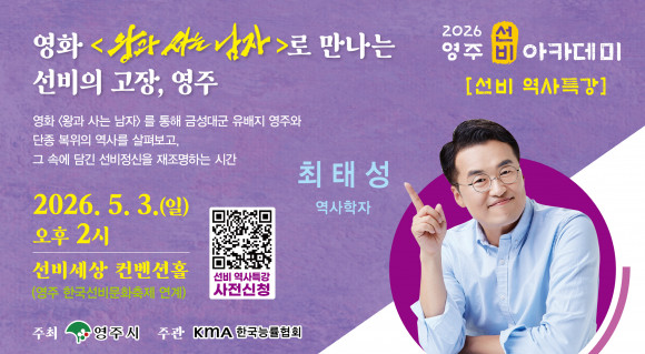 최태성 강사는 단종 복위 운동의 중심 인물인 금성대군의 유배지가 ‘영주’였음을 조명하고, 단종과 세조의 시대를 관통하며 형성된 조선 선비정신을 영주 지역 역사와 연결해 흥미롭게 풀어낼 예정이다.