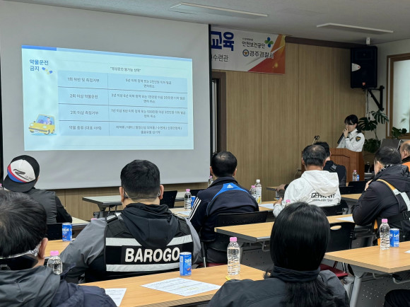 경주경찰서 교통과 경찰관이 강사로 나서 실제 사고 및 단속 사례 중심 교육을 실시했다.