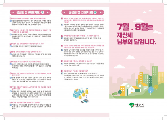 조종근 세무과장은 “재산세에 대한 시민들의 이해를 높이고 납부 과정에서의 불편을 줄이기 위해 리플릿을 제작했다”며 “앞으로도 시민들이 체감할 수 있는 세정 서비스를 지속적으로 확대해 나가겠다”고 말했다.