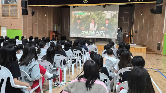 특히 학생들의 눈높이에 맞춰 성우의 다양한 목소리 연기를 시연하고, 여러 직업을 가질 수 있었던 시행착오와 성장 이야기를 공유해 학생들의 뜨거운 반응을 얻었다.