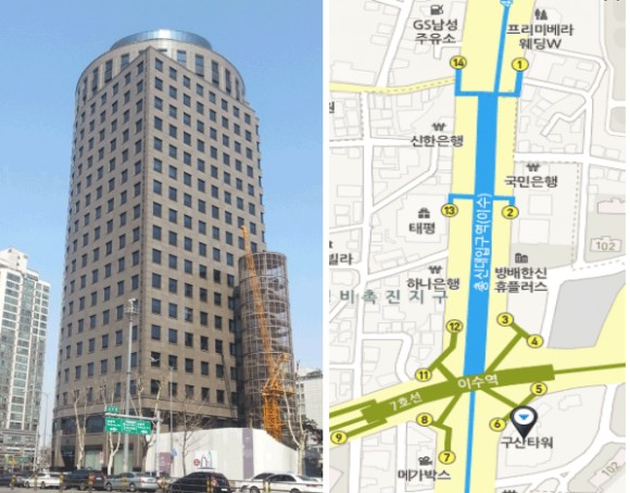 □ 주소 : 서울시 서초구 방배동 3250번지(지하철 이수역) □ 준공연도 : 1999년 8월 □ 규모 : 지상 20층 / 지하 4층 (연 면적 7,556평) □ 주차장 : 239대 □ 외관 및 위치