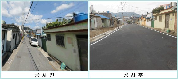 < 의신여중 뒷길(천하장사로~교방천) 도로확장 > Ⅰ사 업 개 요 -위 치 : 마산합포구 교방동 133번지 일원 -사업개요 : 도로개설 L=80m, B=6→10.0m -사 업 비 : 1,000백만원(보상비 790백만원, 공사비 210백만원) -사업기간 : 2013. 4. 8 ~ 2013. 8. 27 Ⅱ그간 추진현황 -2012. 4월 : 실시설계 완료 -2013. 3월 : 편입토지(11필지) 보상완료 -2013. 4월 : 공사 착공 -2013. 6월 : 지장건물(9동) 철거완료 -2013. 8월 : 공사 준공 Ⅲ사 업 효 과 -협소한 도로 확장으로 학교주변 안전한 통학로 확보 및 원활한 차량 소통으로 안전사고 예방 Ⅳ공사 전・후 사진