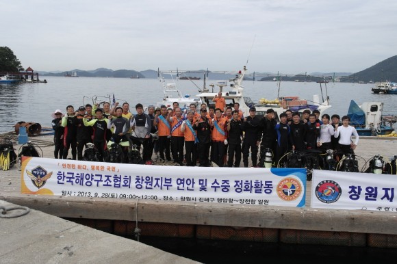 28일 오전에는 진해만 행암항과 장천항 일대에서 창원해경과 한국해양구조협회 창원지부, 포스코특수강 봉사팀, 창원문성대학, 마산대학 등 민간단체 120여명이 연안쓰레기를 수거했고, 해양경찰 122구조대와 한국해양구조협회 창원지부의 창원지역대, 포스코특수강 봉사팀 다이버 30명이 수중정화 활동을 실시해 약 3톤가량의 해양쓰레기를 수거했다.