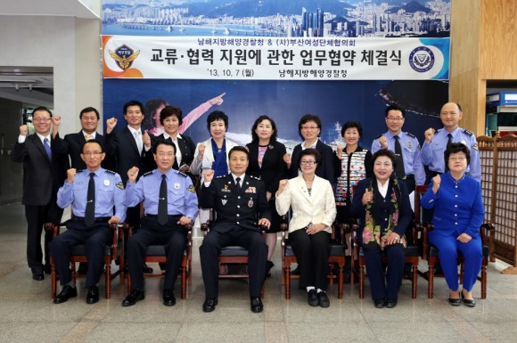 이날 이정근 청장은 “우리 지역 대표 여성단체와 협약을 맺은 것에 대해 매우 뜻 깊게 생각한다”며 “여성의 권익 신장과 복지 증진을 위한 활동에 적극적으로 협조할 것”을 약속했다. 또한 박수자 회장은 “바다와 국민의 안전을 위해 최선을 다하고 있는 해양경찰관들의 복지향상에 조금이나마 도움이 되길 바란다”고 답했다. 한편, 부산광역시 여성단체협의회는 1977년 5월에 설립된 부산시 최대 규모의 여성조직으로, 여성지위향상사업, 지역사회복지 및 봉사활동 등 다양한 사업을 펼치고 있다. (사)부산간호사회 등 29개 여성단체로 구성돼 있으며 회원 수만 약 7만여 명에 달한다.