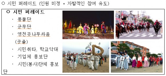 이외에도 신기전의 야간 발사시연, 포은 정몽주선생을 기리는 한시백일장, 영천예술창작스튜디오 입주작가 설치미술과 깃발전이 ‘영천문화에 이야기를 입히자’는 부제를 달고 펼쳐진다.