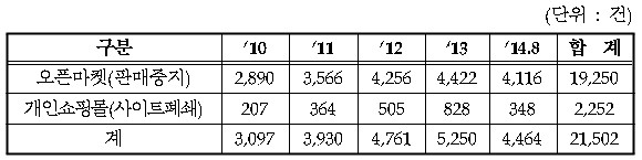 - 온라인 단속으로 21,502건의 판매중지와 사이트 폐쇄