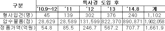 |  | | | ↑↑ 형사입건 단속실적(’10.9~‘14.8)〉 | | ⓒ (주)영남도민일보 | |