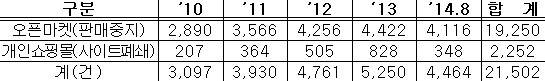 |  | | | ↑↑ 〈온라인 위조상품 모니터링 시스템 단속 실적(’10.1~‘14.8)〉 | | ⓒ (주)영남도민일보 | |