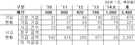 - 심사제로 변경한 이 후 기업 경쟁률은 ’12년 1.7:1, ’13년 2.8:1, ’14년 3:1 등 기업의 수요는 해마다 증가하는 반면, 예산은 정체 상태로 원하는 기업에 충분한 지원이 되지 못하고 있는 실정임