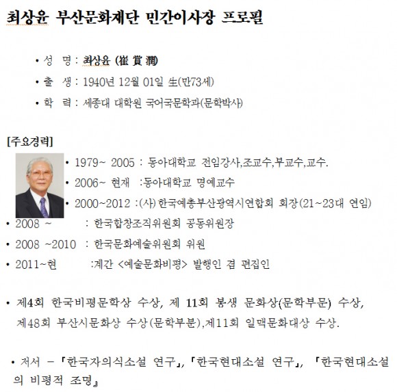 부산시, 부산문화재단 초대 민간이사장에 최상윤씨 임명