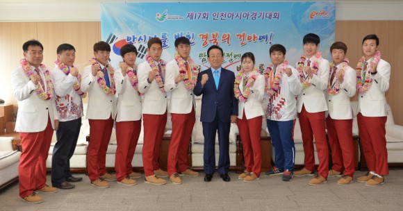 김관용 경상북도지사 인천아시안게임 메달리스트 축하 격려