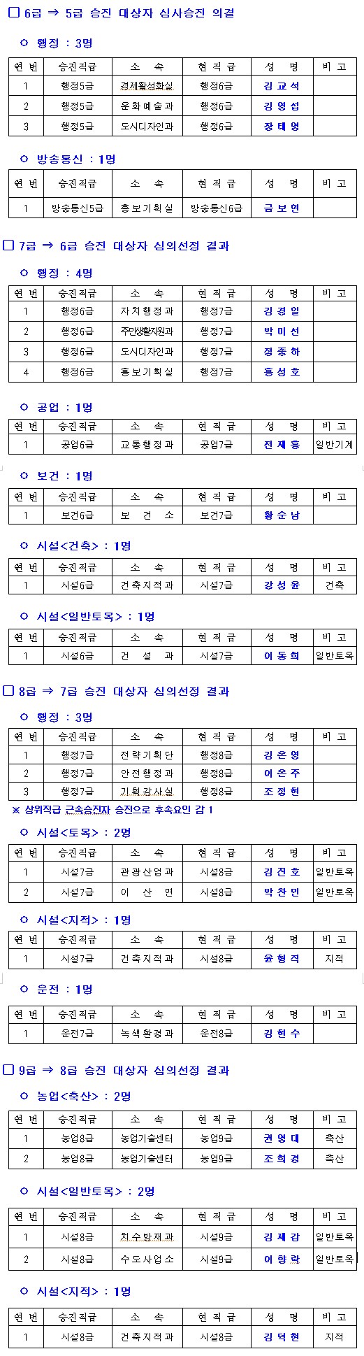 영주시 승진 내정자