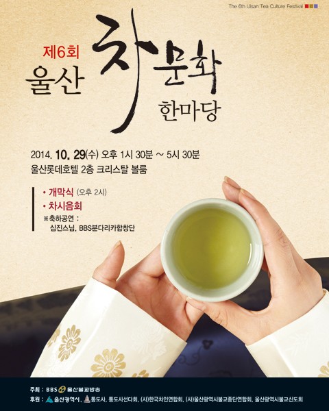 BBS울산불교방송이 마련하는 이번 행사는 10월 29일(수) 오후 1시 30분부터 5시 30분까지 울산 롯데호텔 2층 크리스탈 볼룸에서 개막식과 차자리 경연대회, 차 시음회·시연회, 차 관련 전시회 등의 프로그램으로 진행한다.