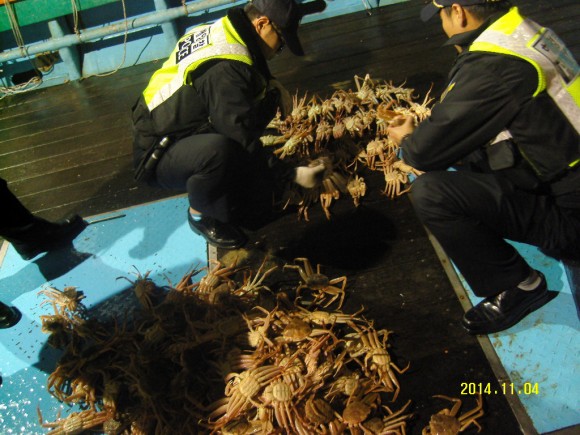 포항해경은 이날 H호가 암컷대게를 불법포획 한다는 민원을 접수코 감포파출소 김수완 경위 등 경찰관 5명 동원, 입항하는 상기 선박을 정밀 검색한 결과 선수 어창에서 암컷대게 330마리를 어망에 보관 은닉한 것을 적발, 검거하였다.