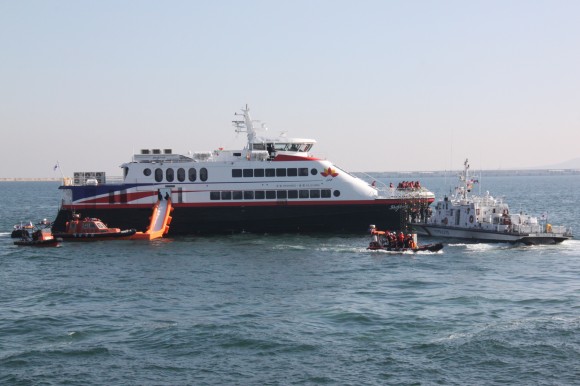 여객선에 탑승중인 승조원·승객 79명중에서 일부 승객들은 해상으로 입수하고 나머지 승객들은 여객선에 대기하는 상황에서 동원세력들이 신속히 익수자 구조와 승객대피 유도·구조하는 장면이 연출되었다.