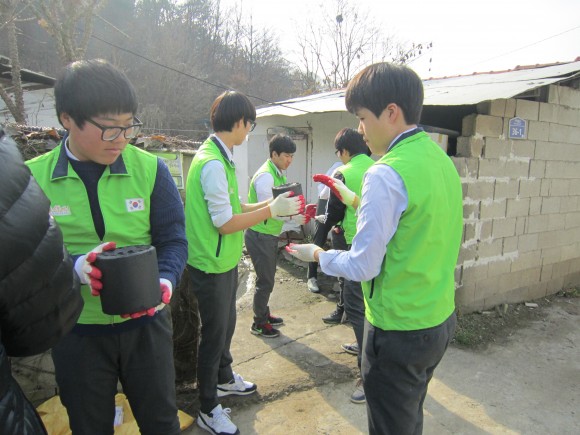 날씨가 쌀쌀해지면서 마음까지 움츠러들기 쉬운 요즘 지난 27일 영천시 금호중․금호공업고등학교(교장 손대성)에서는 금호에 거주하는 저소득층 7세대에게 도배(50만원 상당)를 비롯해 연탄 3,000장(150만원)을 직접 방문 전달하여 따뜻한 사랑을 전했다