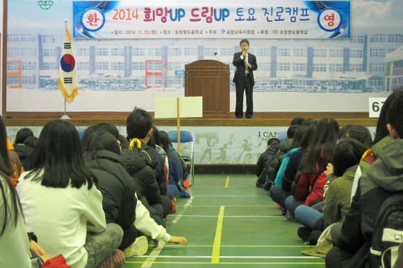 포항교육지원청(교육장 이경희)은 11월 29일(토) 오전 9시, 포항항도중학교에서 관내 중학교1학년 220여명이 참가하여 ‘2014미래를 설계하는 토요진로캠프’를 실시하였다.