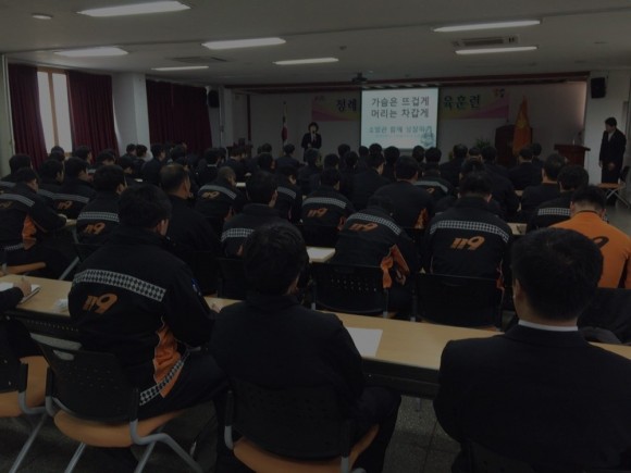 |  | | | ⓒ (주)영남도민일보 | | 포항시 북구보건소 정신건강증진센터는 지난 1일(월) 북부소방서 3층 대회의실에서 소방공무원 80여명을 대상으로 정신건강증진교육을 실시했다. 2013년 소방방재청 국감 자료에 따르면 지난 5년간 외상 후 스트레스 장애, 우울증, 수면장애 위험군이 소방공무원 중에서 13.9%에 달해 소방관들의 근무환경에 따른 정신적 건강 문제가 심각한 수준으로 드러났다. 또 '2014년 전국 소방공무원 심리평가 설문분석'에 따르면 이와 같은 정신건강문제에 대해 치료의향이 있는 응답자는 28.6%로 나타났지만 현재 전문적인 치료를 받고 있는 경우는 0.7%에 그쳤다. 전문적 도움을 받을 수 있는 방법을 모르는 소방관이 3.4%에 이르는 것으로 조사된 것도 충격을 주고 있다.