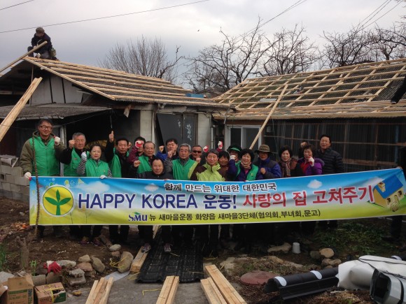 화양읍 새마을3단체 회원들은 연말을 앞두고 2014년 재활용품모으기 경진대회를 통해 얻어진 수익금으로 사랑의 집 고쳐주기 봉사활동을 하여 훈훈한 이웃사랑 실천을 펼쳤다.