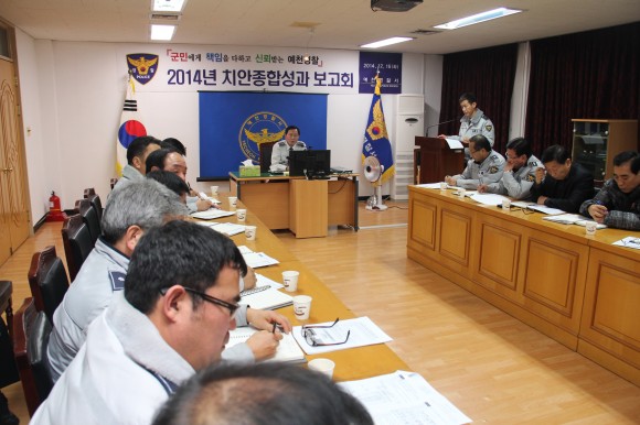 예천경찰서(서장 박달서)는 16일 2층 회의실에서 서장, 각 과장, 파출소장 등 30여명이 참석한 가운데 2014년 치안종합성과 보고회를 통해 추진사항을 점검하고 미비점을 개선하여‘15년도 추진업무에 적극 반영하기로 했다.
