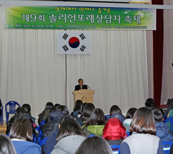 |  | | | ⓒ (주)영남도민일보 | | 경남 함안군이 주최하고 함안군청소년상담복지센터가 주관하는 제9회 솔리언 또래상담자축제가 20일 오후 12시 산인면종합복지관 대강당에서 함안고, 명덕고 등 관내 10개 중·고등학교 학생 100여 명이 참가한 가운데 개최됐다.