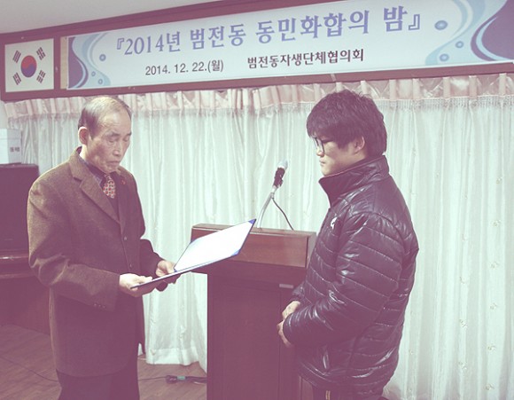 범전동 주민들은 22일(월) 범전동 주민센터에 모여 ‘2014년 범전동 동민화합의 밤’ 행사에는 통합될 부전1동 주민들과 동장, 구의원이 함께 참석해 그동안 범전동을 위해 물심양면으로 헌신해준 분들에게 감사장을 전하는 자리도 마련했다.
