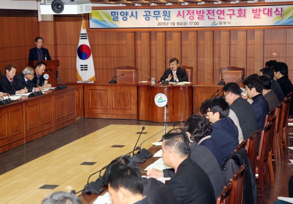 |  | | | ⓒ (주)영남도민일보 | | 밀양시는 1월 9일(금) 오후5시 시청 소회의실에서 밀양시 공무원 시정발전 연구회 발대식을 가졌다.