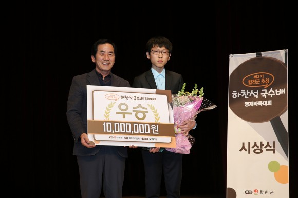 하창환 합천군수는 인사말에서 2012년부터 시작된 합천영재대회가 위상과 규모가 커진 것에 대해 매우 자랑스럽게 생각하면서 하찬석 국수를 배출한 고장인 만큼 앞으로 계속해서 후원을 하여 한국바둑발전에 이바지 하겠다.라고 했다.