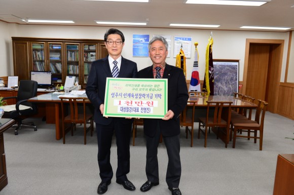지난 1월 14일 대성철강공업사(대표 전영진)는 영주시인재육성장학회에 1천만 원(2015년까지 총 2천만 원)을 기탁했다.