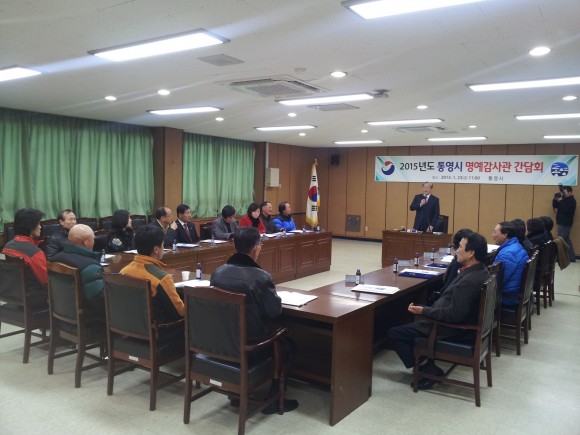 통영시(시장 김동진)는 2015년 1월23일 시청 회의실에서 통영시 명예감사관 위촉 및 간담회를 개최하였다.